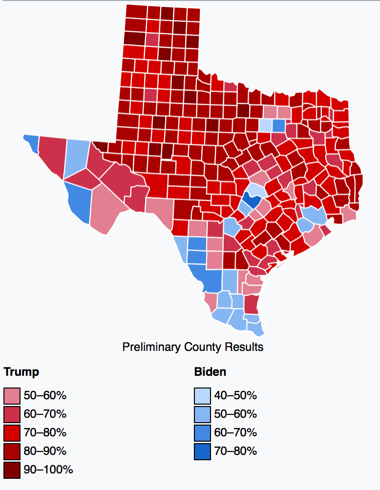 The Democrats try again. Everyone has the story by now: Trump cleared in Texas by almost six points, Biden found new strength in the suburbs outside Austin and Houston, particularly in Fort Bend, Williamson and Hays County, but hemorrhaged votes all along the borderlands. Biden marched away with the cities: Dallas, San Antonio, El Paso, Houston and Austin – but dramatically lost the rural counties. Trump made inroads among racially oppressed and marginalized groups in Texas and the much-discussed-but-hardly-theorized ‘urban-rural’ divide is as sharp as ever in the state.