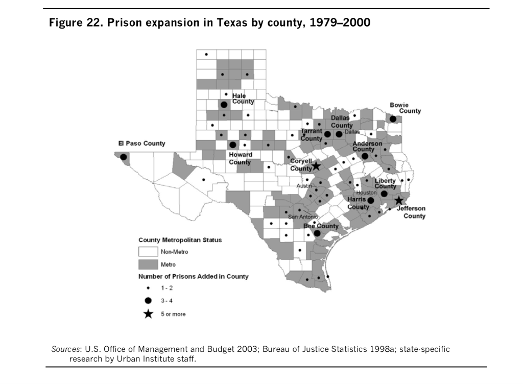 [3] Travis, J. and Lawrence, S. (2004) The New Landscape of Imprisonment: Mapping America’s Prison Expansion. Washington DC: Urban Institute Justice Policy Center. http://webarchive.urban.org/UploadedPDF/410994_mapping_prisons.pdf